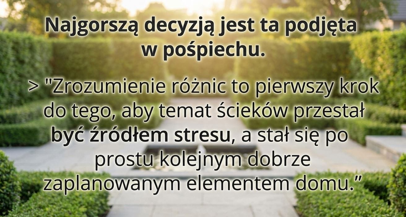 Wybór rodzaju przydomowej oczyszczalni ścieków nie musi być stresujący. Wystarczy zrozumieć różnice i dopasować rozwiązanie do realnych warunków, a nie do obietnic z ulotki.
