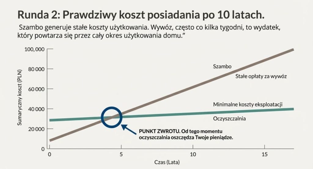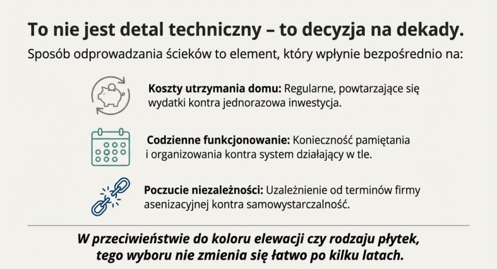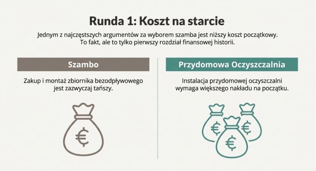Na etapie budowy domu cena początkowa działa na wyobraźnię. Szambo wydaje się tańsze, więc automatycznie uznawane jest za rozsądniejszy wybór. To jednak tylko fragment obrazu.