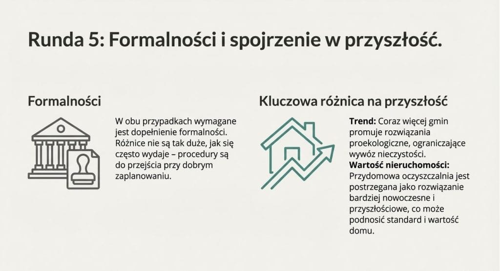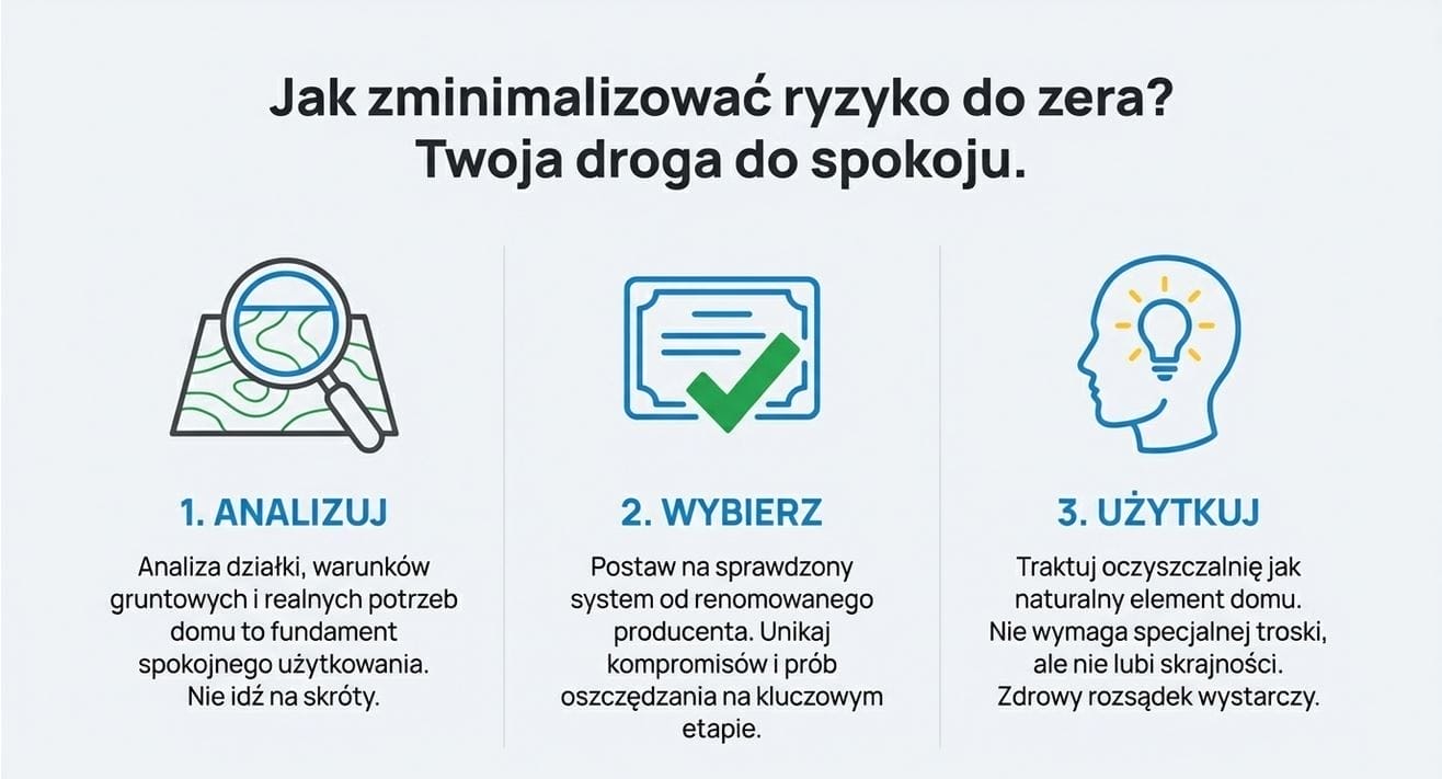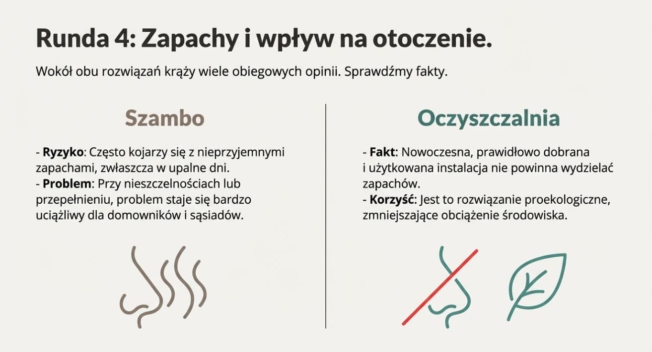 Najlepszym sposobem na uniknięcie zapachu jest dobry wybór na początku. Analiza działki, warunków gruntowych i realnych potrzeb domu to fundament spokojnego użytkowania.