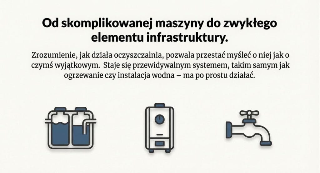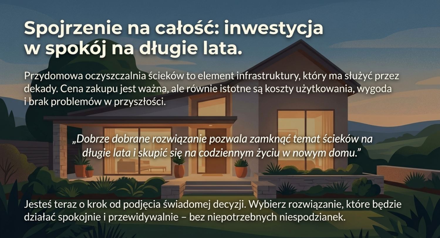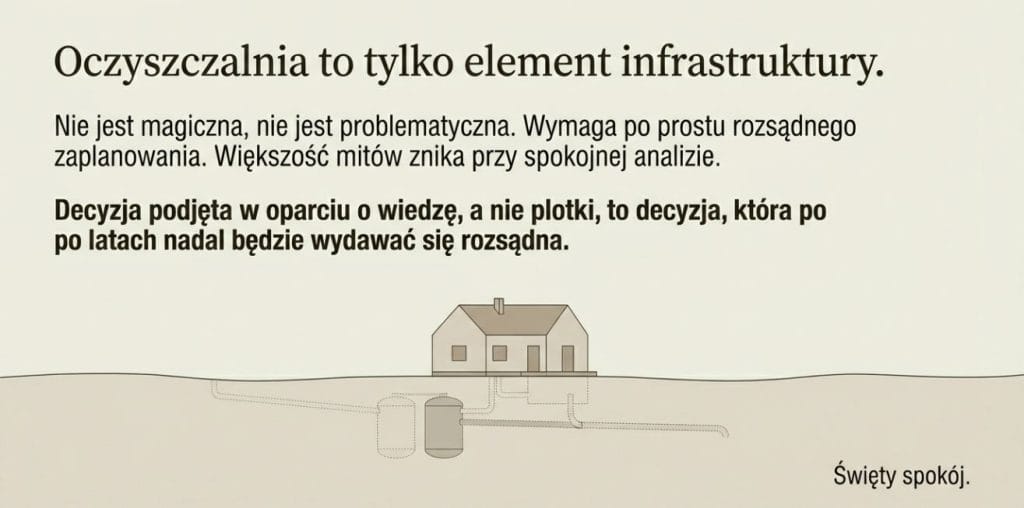 Przydomowa oczyszczalnia ścieków nie jest ani rozwiązaniem magicznym, ani problematycznym z definicji. Jest po prostu elementem infrastruktury domu, który wymaga rozsądnego zaplanowania.