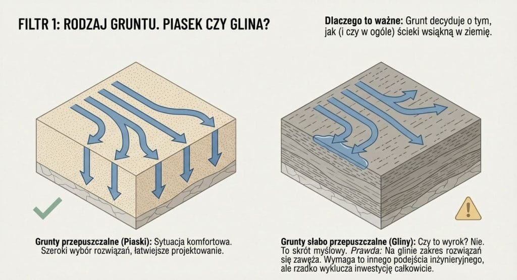 Grunt to jeden z najważniejszych czynników, choć często bagatelizowany. Różnica między piaskiem a gliną ma ogromne znaczenie dla sposobu odprowadzania oczyszczonych ścieków.