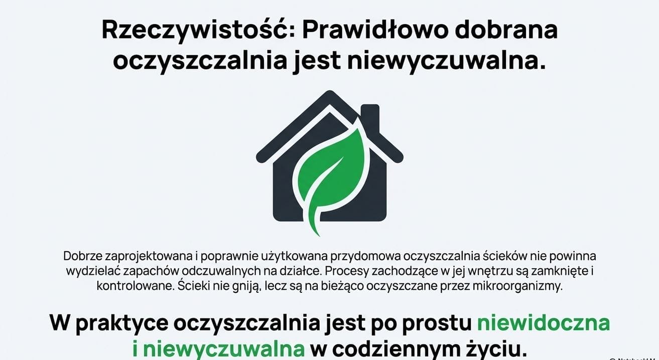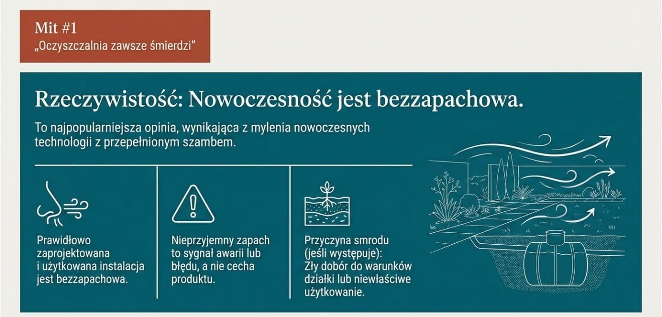 To zdecydowanie najpopularniejsza opinia, która wraca jak echo na każdej budowie. W praktyce jest to mit wynikający z mylenia nowoczesnych oczyszczalni z przepełnionym szambem albo źle dobranym systemem sprzed lat.