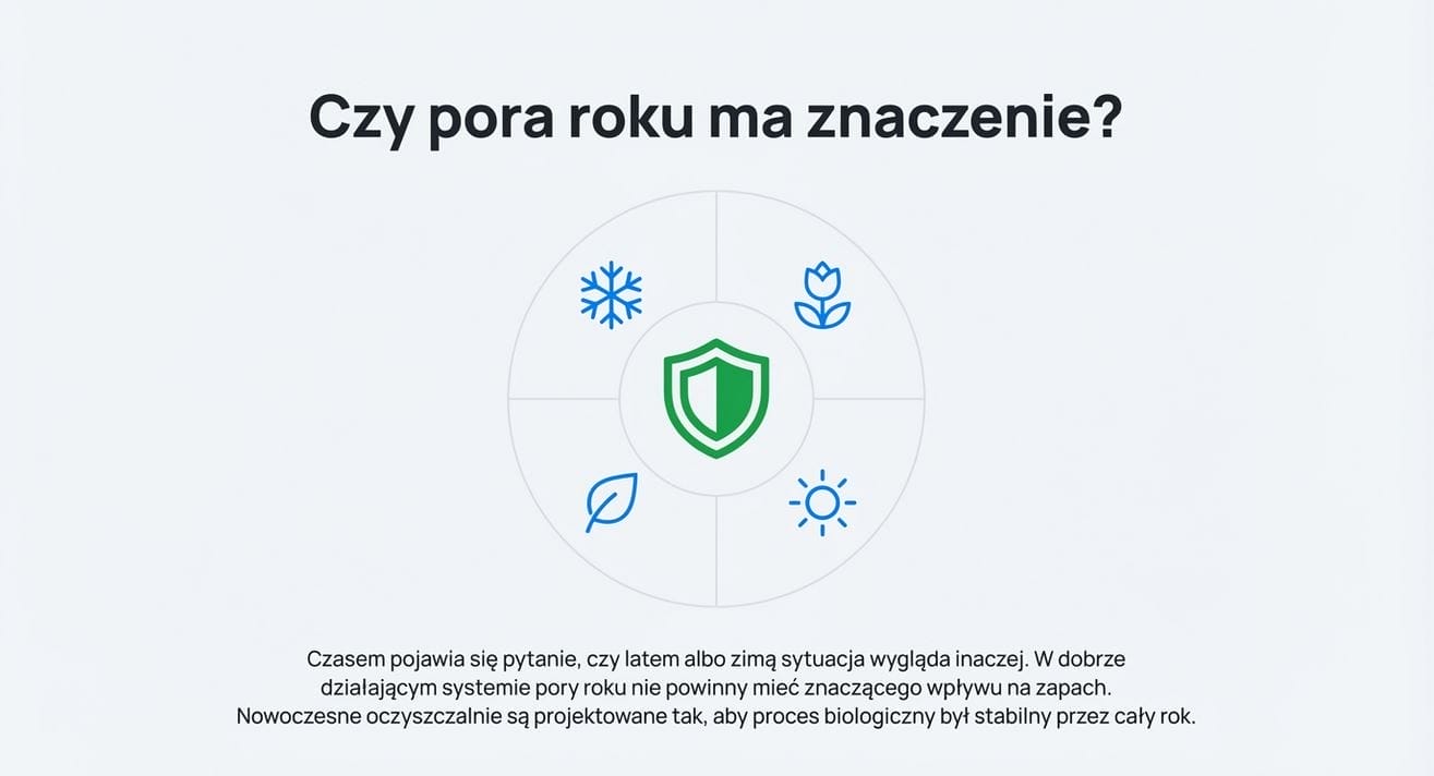 Czasem pojawia się pytanie, czy latem albo zimą sytuacja wygląda inaczej. W dobrze działającym systemie pory roku nie powinny mieć znaczącego wpływu na zapach.