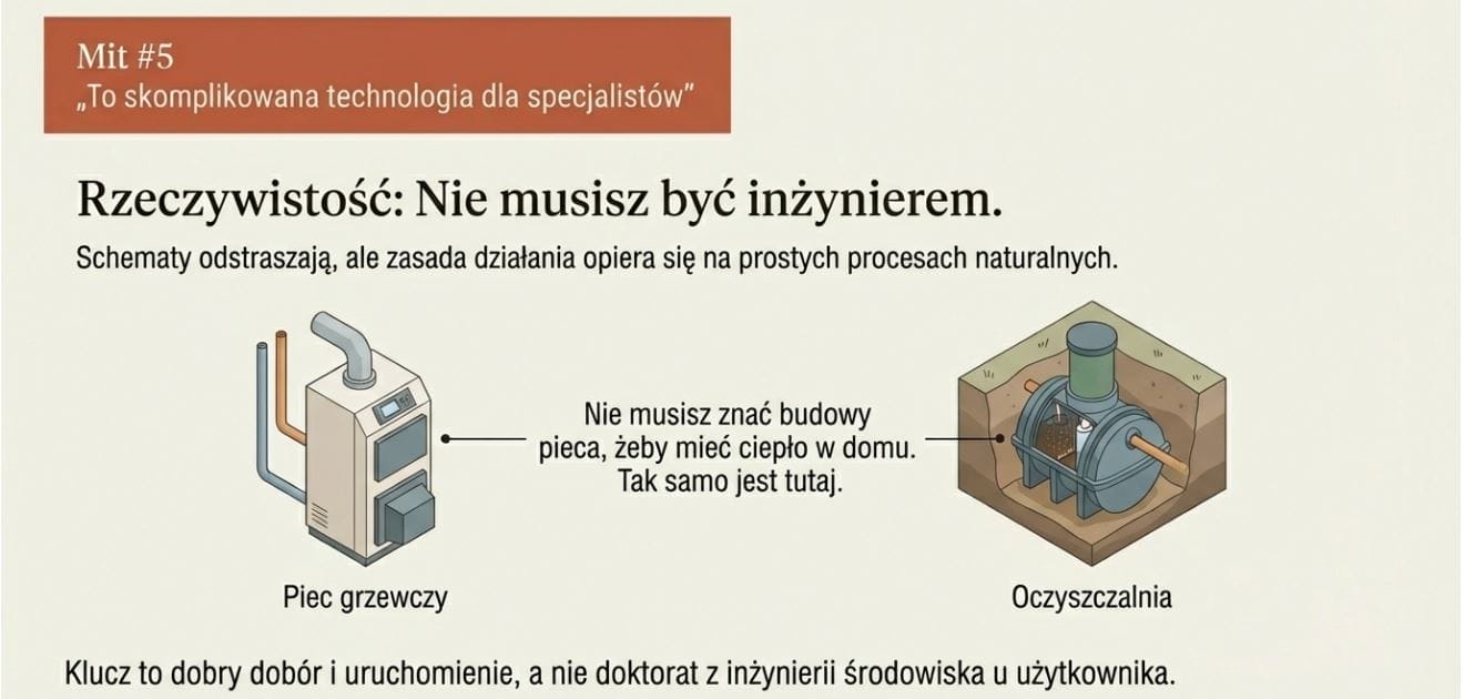 Nazwy, schematy i opisy techniczne potrafią odstraszyć. W efekcie wiele osób zakłada, że oczyszczalnia to coś, co łatwo zepsuć i trudno zrozumieć bez fachowej wiedzy.