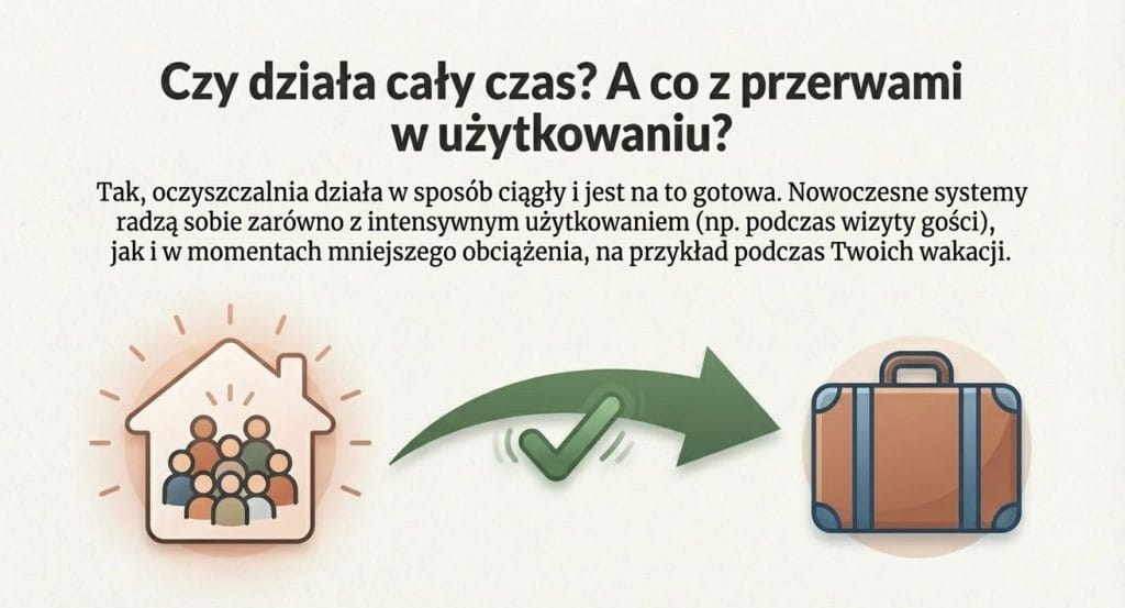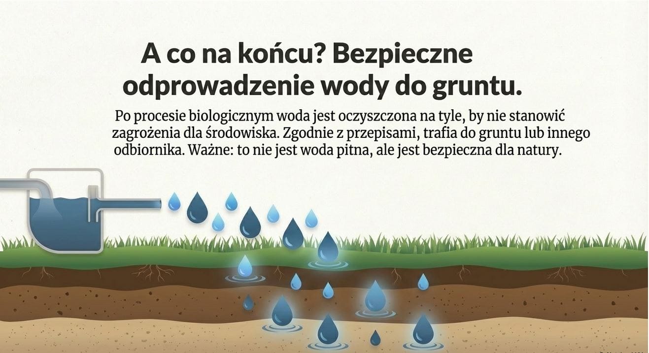 Dla użytkownika oznacza to jedno. Oczyszczalnia działa w tle i nie wymaga codziennej uwagi.