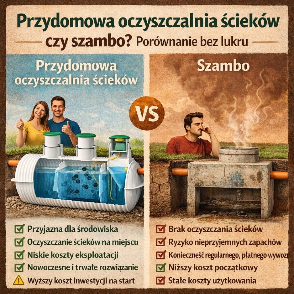 Na etapie planowania domu wiele osób zadaje sobie pytanie, czy nie prościej postawić zwykłe szambo. To zrozumiałe, bo szambo jest rozwiązaniem znanym, prostym w założeniu i na pierwszy rzut oka tańszym.